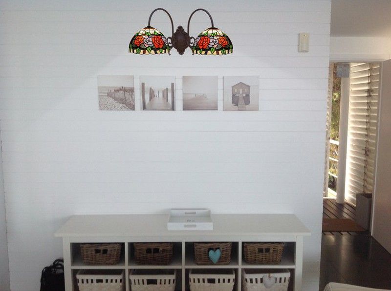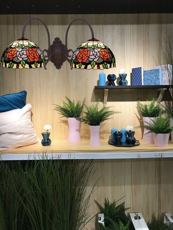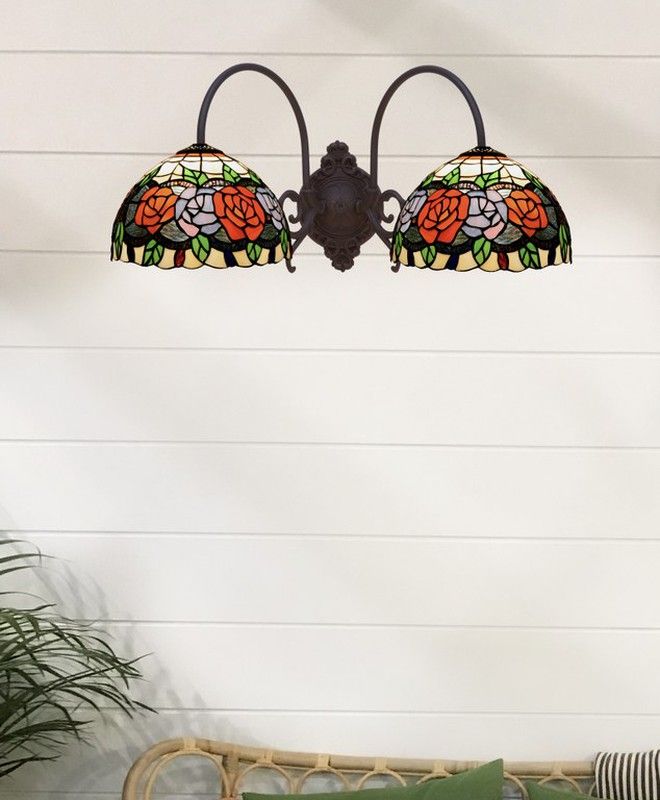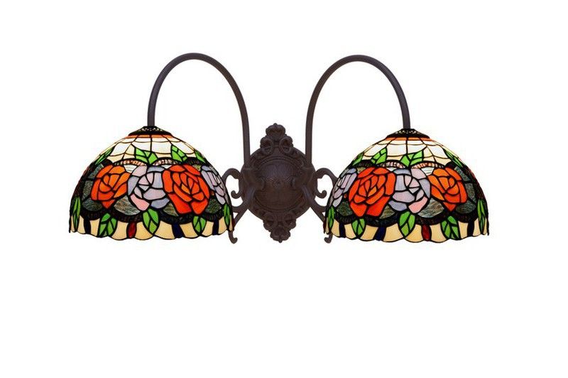 Wall lamp 2 arms Tiffany Series Rosy Tiffan and Light certified original opaline American leaded glass of high quality modernist