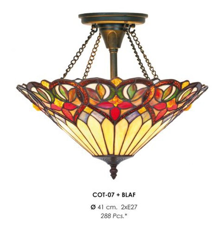 Low ceiling Tiffany with chains Diameter 41cm Height 38cm 2xE27 288 pieces (leaded glass opaline)