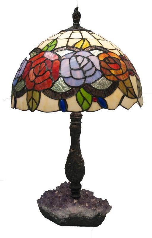 Table lamp with amethyst base Diameter Tiffany lampshade 30cm Base in semi-precious stone of approximately 1 kgrs 1xE27 Max.60w